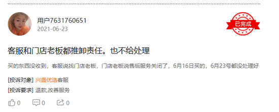 此外,有消费者在黑猫投诉上表示,兴盛优选的团长和客户互相推诿,退款一拖再拖。