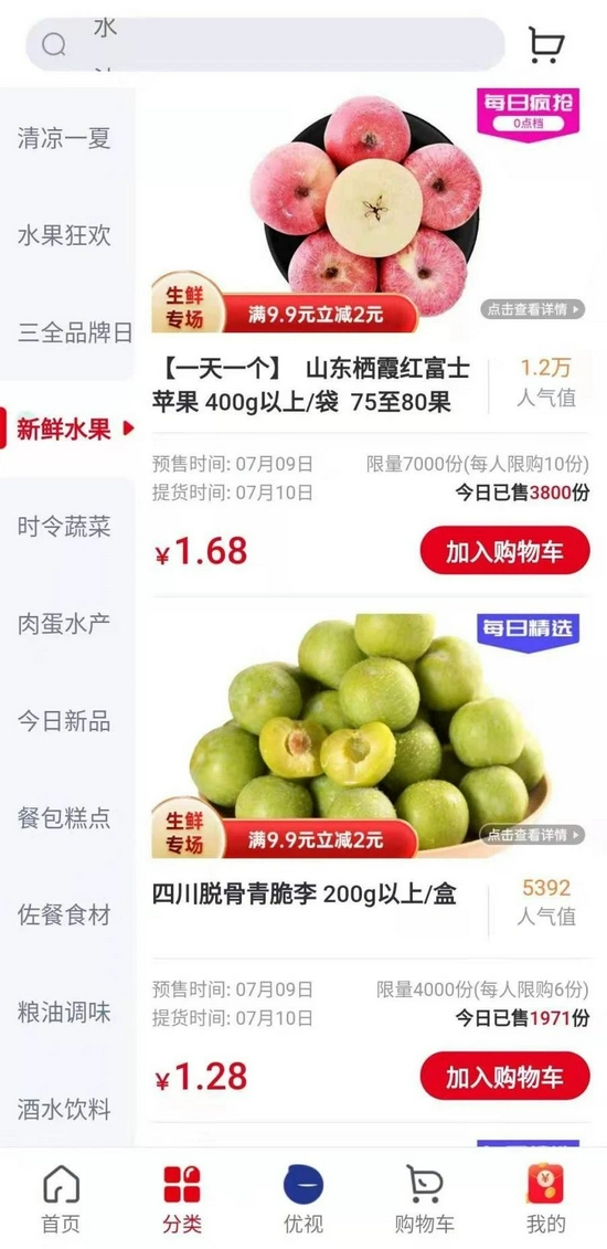 对比美团优选的价格,兴盛优选也是便宜的。美团上山东红富士500g卖3.5元,折成400g是2.8元。脆李450g卖3.8元,折成200g卖1.68元。